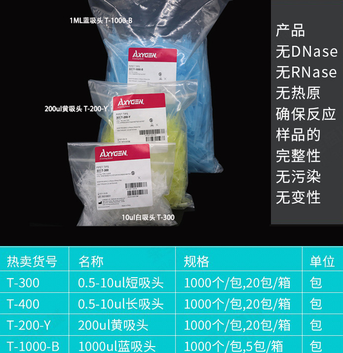 愛思進 Axygen 吸頭T-300、 T-200-Y、 T-1000-B