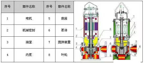 AS潛水式排污泵主要部件由葉輪、泵體、底座、潛水電機組成。水泵軸和電機軸是同一根軸,由于水泵位于整個排污泵最下端,它能最大限度抽吸地面積余污水。