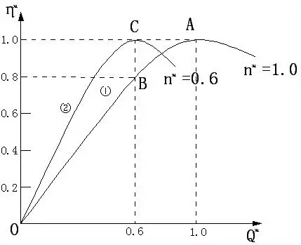 由C點決定。由圖可知,與調(diào)節(jié)閥門開度相比,調(diào)節(jié)轉(zhuǎn)速時所節(jié)約的能量是相當可觀。