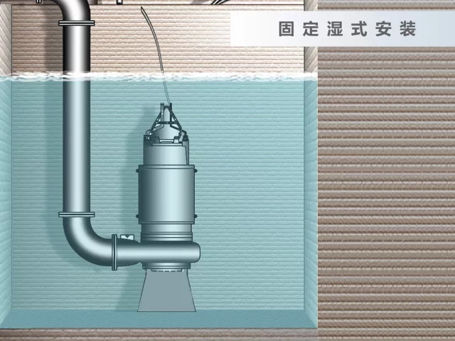 2)固定濕式安裝、固定干式安裝適用于功率≥11kw的潛水排污泵