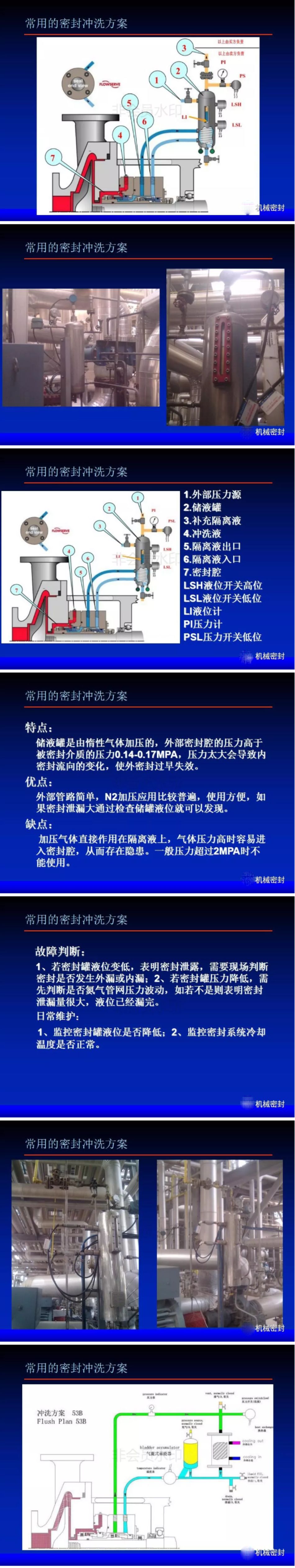化工泵雙端面機(jī)械密封有兩道端面密封,若一級密封失效,二級密封仍然可密封,防止泄露。一般雙端面密封都需要外供密封液系統(tǒng),向密封腔內(nèi)引入封液進(jìn)行堵封、潤滑和冷卻,且多為循環(huán)冷卻使用。密封液不僅可以沖洗摩擦副改善機(jī)械密封工作環(huán)境,還可以作為一級密封面是否失效的重要檢測手段。