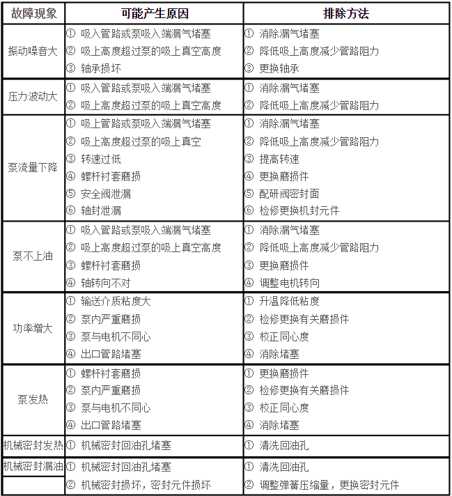 單螺桿泵常見故障及排除方法