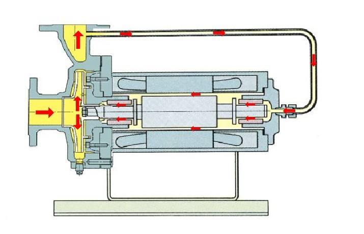 屏蔽泵是一種無密封泵,泵軸與電機軸共用一根軸,葉輪裝在這根公共軸上,電機與泵融為一體,都被密封在一個被泵送介質充滿的壓力容器內,此壓力容器只有靜密封,并由一個電線組來提供旋轉磁場并驅動轉子。