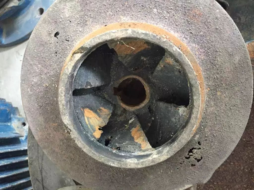 使用一段后出現(xiàn)故障寄回廠里返修,拆解后發(fā)現(xiàn)葉輪氣蝕嚴(yán)重,在客戶(hù)拍攝管路了解現(xiàn)場(chǎng)管網(wǎng)情況及水泵使用情況后,我們的