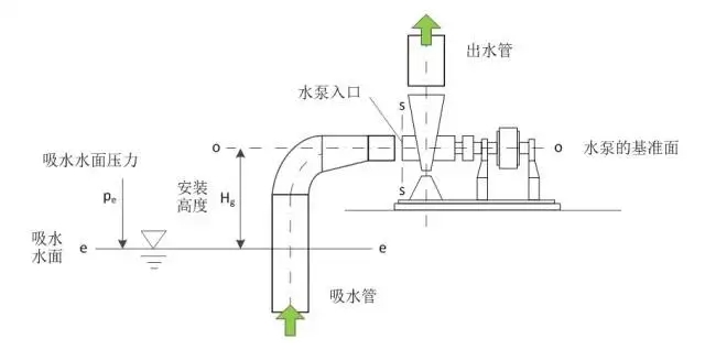 為了避免汽蝕現(xiàn)象的發(fā)生,離心泵的安裝高度需要進(jìn)行非常仔細(xì)的校核計(jì)算。水泵進(jìn)水側(cè)裝置形式示意圖如下: