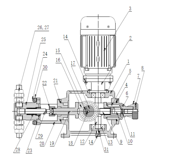 J-X,DZ-J系列柱塞計量泵:偏心機構(gòu)驅(qū)動,結(jié)構(gòu)緊湊;流量調(diào)節(jié)為可變偏心滑軸(Z形軸)調(diào)節(jié)機構(gòu);堅固、緊湊的設(shè)計,泵頭體積小,具有可優(yōu)化的連接。