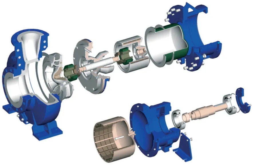 首先在生產(chǎn)、材料、軸承系統(tǒng)的液壓和設(shè)計(jì)細(xì)節(jié)以及旋轉(zhuǎn)部件的導(dǎo)向和密封等方面進(jìn)行了改進(jìn)。一個(gè)主要的進(jìn)步是引進(jìn)無(wú)密封設(shè)計(jì)(磁力驅(qū)動(dòng)和屏蔽泵)。