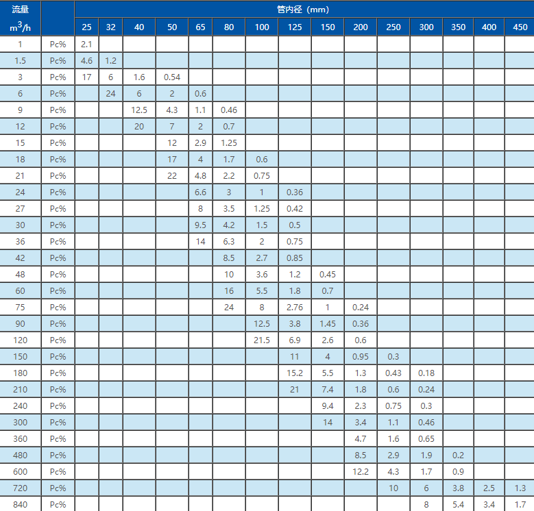 Pc%;每一百米新鑄鐵管揚(yáng)程損失(m)