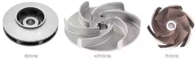 根據葉片形式分為三種:開式葉輪、閉式葉輪、半開式葉輪。