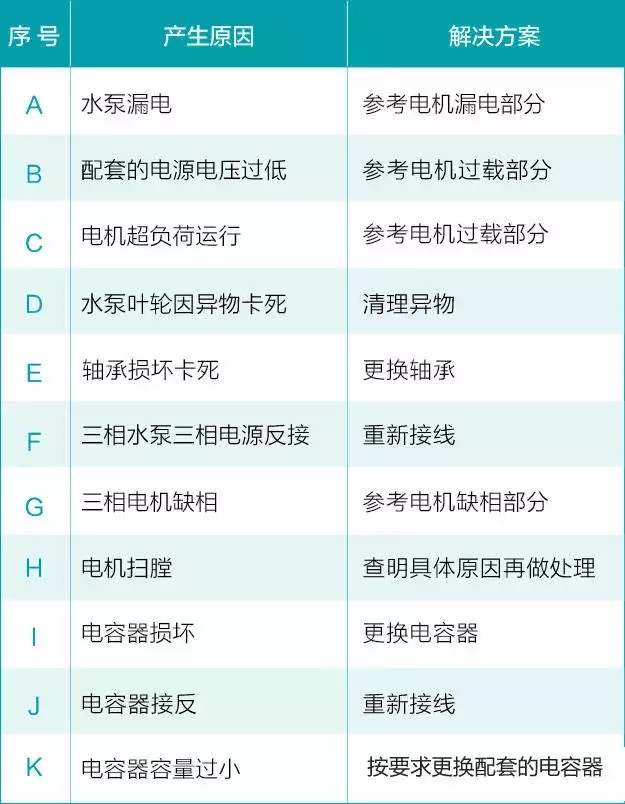 處理方法:裝穩(wěn)水泵或降低水泵的安裝高度;更換電機(jī)滾珠軸承;矯正彎曲的水泵主軸或調(diào)整好水泵與電機(jī)的相對(duì)位置。