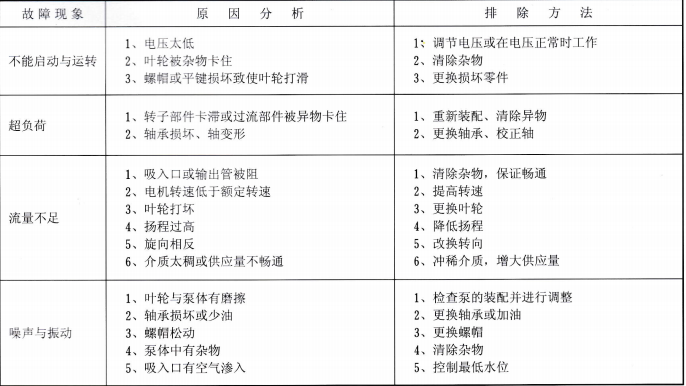 二、 自動(dòng)攪勻潛污泵常見(jiàn)故障分析及其排除方法: