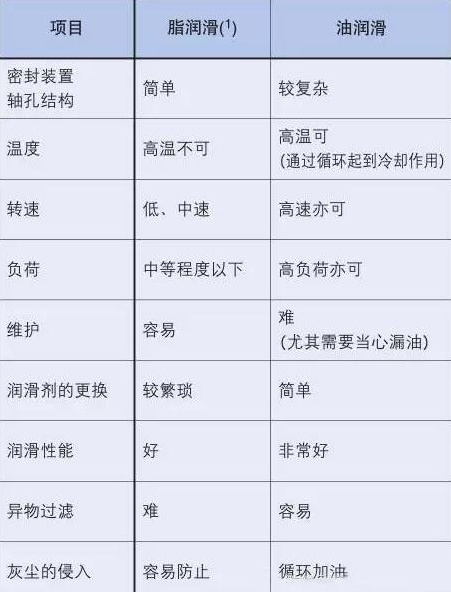 脂潤(rùn)滑和油潤(rùn)滑的比較: