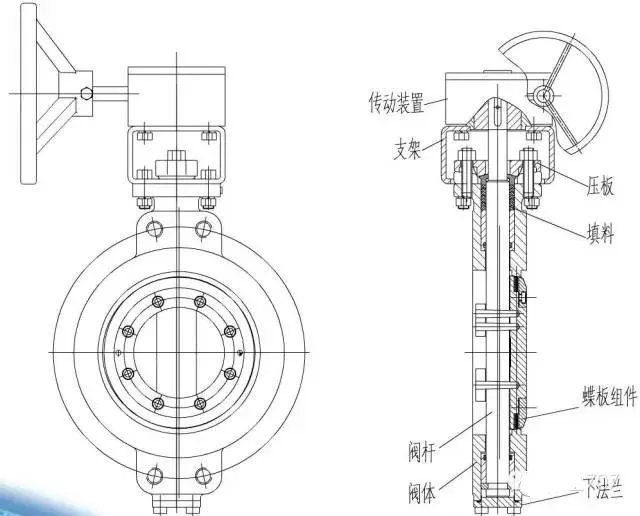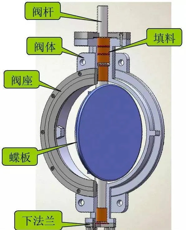 蝶閥主要由閥體、活體、閥軸、軸承、密封裝置、操作機(jī)構(gòu)及附屬部件組成。