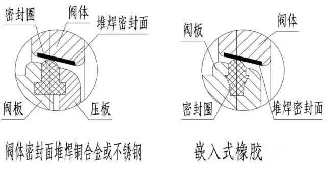 2,閥門(mén)關(guān)閉時(shí),閥座和閥板密封面處在有相對(duì)過(guò)盈的接觸狀態(tài),要達(dá)到密封主要是靠壓緊密封圈使其在周邊方向上膨脹產(chǎn)生密封比壓和管道壓力對(duì)閥板的力,使其達(dá)到密封,所以只能單向密封。