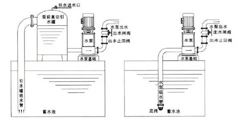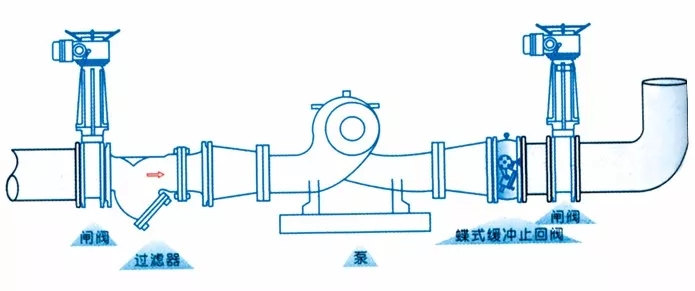 另一種是安裝在水泵的后方。這種安裝方法是液面高于水泵的情況下,方便啟停水泵時不用關(guān)水泵出水閥,特別是對于母管制水泵系統(tǒng),防止發(fā)生倒流的情況。