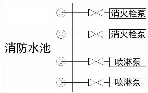 每組消防水泵的吸水管不應(yīng)少于兩條,當(dāng)其中一條損壞或檢修時(shí),其他吸水管應(yīng)仍能通過全部消防給水設(shè)計(jì)流量。(5.1.13)