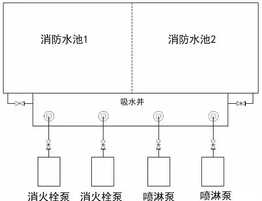 下面,我們講解在分隔成兩格和兩座的消防水池中,消防水泵吸水管設(shè)置的最優(yōu)方案和常見誤區(qū)