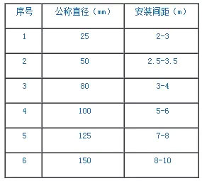 f、彈性吊架應(yīng)均勻布置,安裝間距可按下表的規(guī)定。