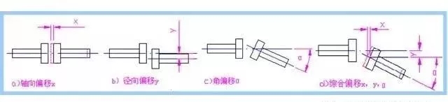 對于剛性固定式聯(lián)軸器,由于制造安裝誤差,軸變形及溫度變化等原因,使兩軸不能保證嚴(yán)格對中,而存在不同程度的偏移或偏斜。若用剛性聯(lián)軸器將引起附加動載荷,要求聯(lián)軸器或離合器從結(jié)構(gòu)上適應(yīng)各種形式的偏移,以保證正常工作。