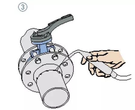 6、待焊口冷卻后再安裝閥門。保證閥門在法蘭中有足夠活動空間以防止閥門被損壞,并保證閥板有一定的開度;