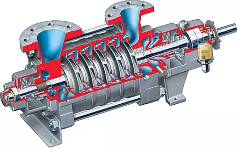 多級泵使用幾個(gè)葉輪串聯(lián)起來工作,故揚(yáng)程高。分為分段式多級離心泵和中開式多級離心泵兩種形式。