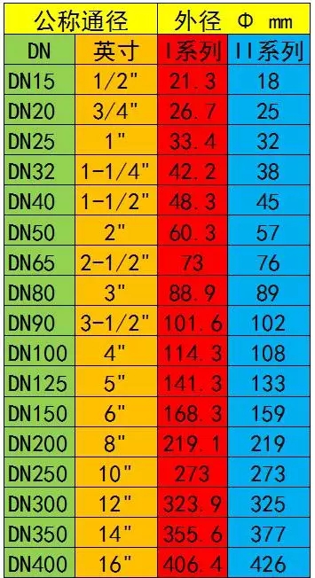 現(xiàn)在我們把"與DN之間的換算搞清楚了,里面還有一個(gè)關(guān)鍵性的問(wèn)題沒(méi)介紹,那就是國(guó)內(nèi)的DN換算成外徑的話有兩種外徑尺寸(有少部分兩種外徑一樣),如國(guó)內(nèi)的鋼管DN100有兩種外徑,一種是系列中Φ143一種是l系列的中Φ108,兩個(gè)都是DN100通徑的鋼管,這樣我們來(lái)區(qū)分的話就這樣來(lái)標(biāo)識(shí)DN100和DN100這樣一看就明白是哪種外徑規(guī)格了。l系列基本是美洲體系的外徑尺寸,系列是較早國(guó)內(nèi)常用的管道外徑尺寸。