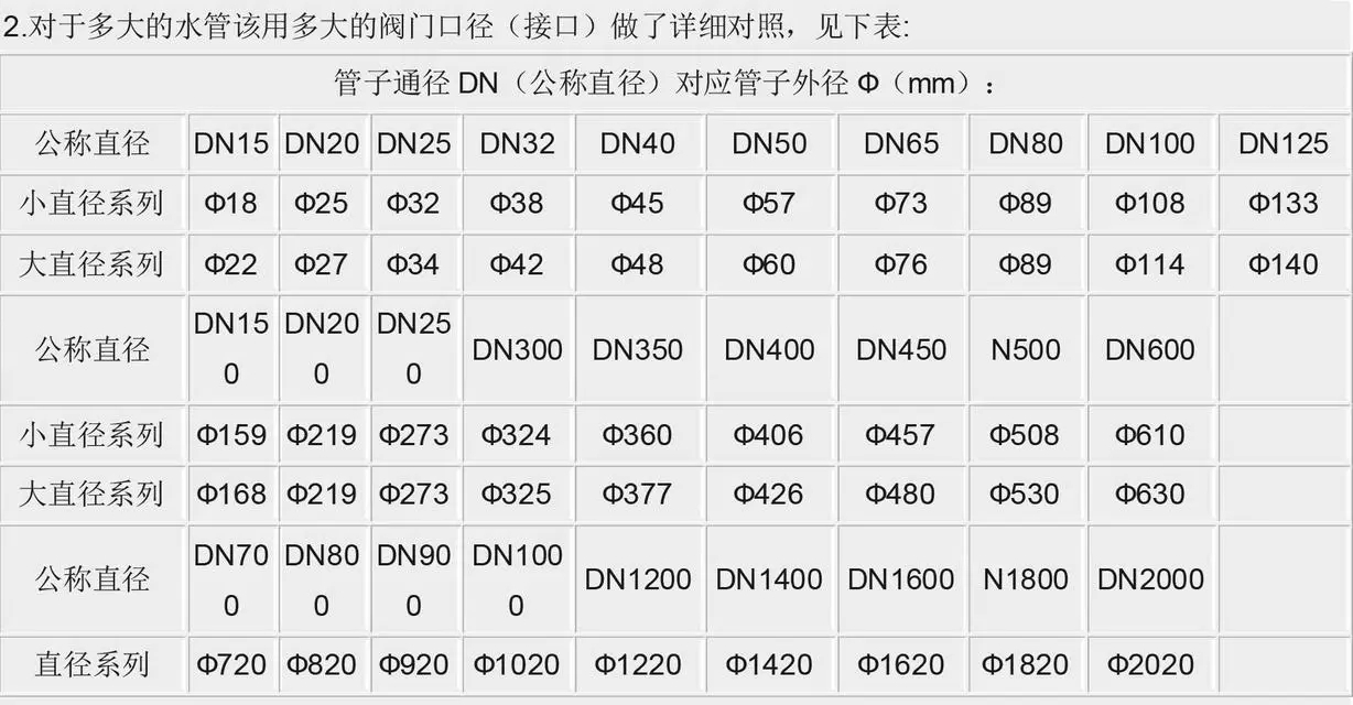 管徑與閥門(mén)通徑的英寸、DN、尺寸對(duì)照表