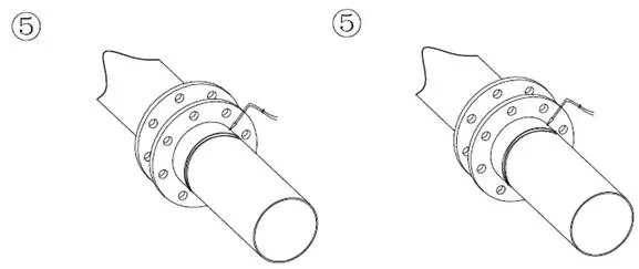 2、按圖示將兩端螺栓螺母分別輕輕插入兩端對應(yīng)的法蘭孔(法蘭式蝶閥需調(diào)整墊片位置),將螺母稍加擰緊以校正法蘭面的平面度;
