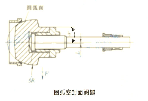 按照API623的規(guī)定,閥瓣密封面可采用圓弧密封面設(shè)計(jì),其與閥座密封面的密封為線密封。假設(shè)截止閥垂直安裝后,閥瓣軸線與閥座密封錐面軸線有a°傾斜角,軸線偏差為L,在閥桿推動閥瓣靠攏閥座的過程中,閥瓣圓弧密封面首先會有一小部分先接觸閥座密封面,在閥桿的持續(xù)推動下,閥瓣圓弧密封面將有一個自動找正密封的趨勢,最終使閥瓣貼緊閥座密封面,保證密封的可靠。