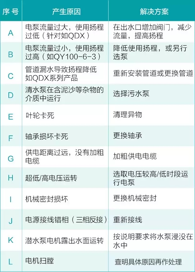 處理方法:裝穩(wěn)水泵或降低水泵的安裝高度;更換電機(jī)滾珠軸承;矯正彎曲的水泵主軸或調(diào)整好水泵與電機(jī)的相對(duì)位置。