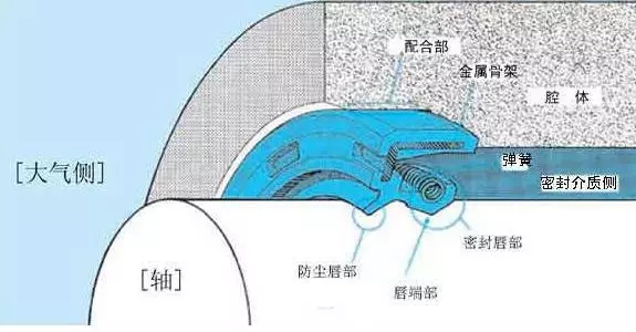 油封的密封機理涉及兩個因素,一個是腔體的密封,主要是油封外緣(靜態(tài)部件)在腔體中的定位;二是密封唇口與旋轉軸表面接觸的動態(tài)密封,這是油封的最重要功能。