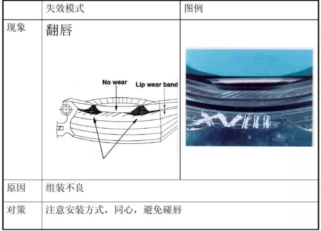 ② 油封位與旋轉軸不同軸,油封壓裝后發(fā)生偏磨,唇口異常磨損;
