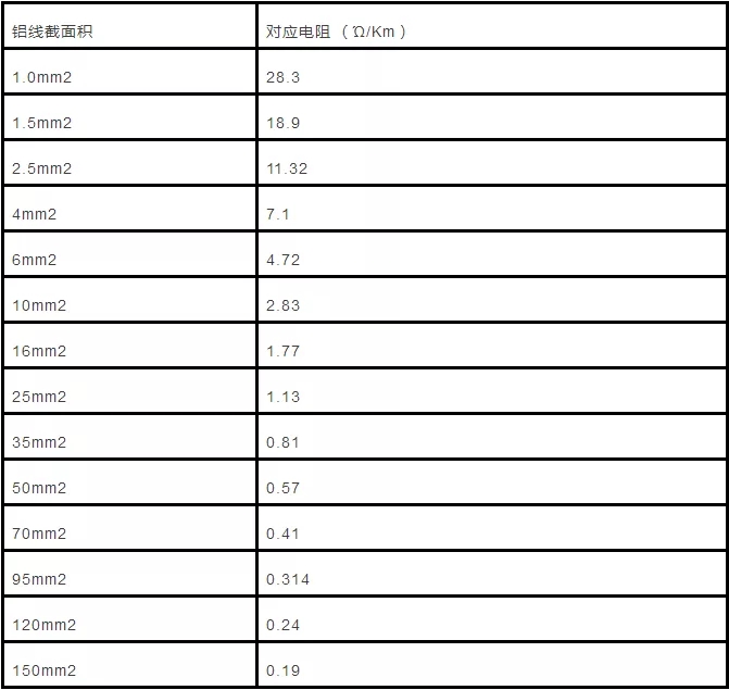 20℃時:17.5÷截面積(平方毫米)=每千米電阻值(Ω)