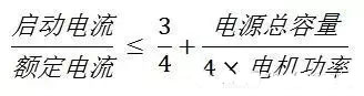 直接啟動電流很大,因此一般用于功率小于15KW的電機(jī)或者在供電、動力部門允許的情況下放寬電機(jī)功率范圍。是否能直接啟動主要取決于電機(jī)功率與變壓器容量之比。在有獨(dú)立變壓器,電機(jī)欲頻繁啟動,電動機(jī)的功率一般要小于變壓器容量的20%。如果不用頻繁啟動,該值可為30%。如果直接接入電力公司電網(wǎng),沒有獨(dú)立變壓器,按如下公式進(jìn)行估算:
