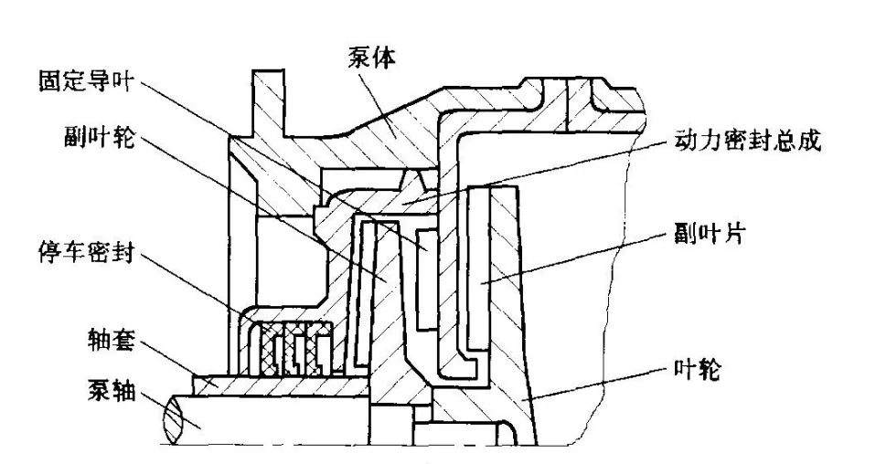 動力密封可分為背葉片密封和副葉輪密封兩類。泵工作時靠背葉片(或副葉輪)的離心力作用使軸封處的介質(zhì)壓力下降至常壓或負壓狀態(tài),使泵在使用過程中不泄漏。停車時離心力消失,背葉片(或副葉輪)的密封作用失效,這時靠停車密封裝置起到密封作用。