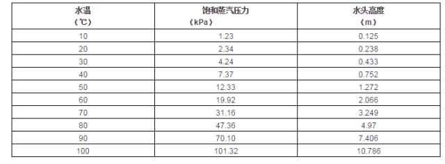 不同溫度時(shí)水的飽和蒸汽壓對(duì)應(yīng)水頭高度見下表: