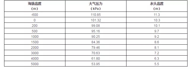 pe—吸水水面壓力,Pa;(為吸水水面的大氣壓,海拔越高大氣壓越低)