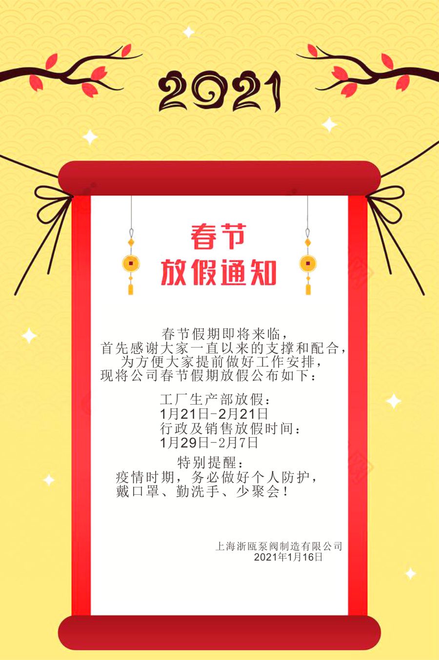 2021年春節(jié)放假通知