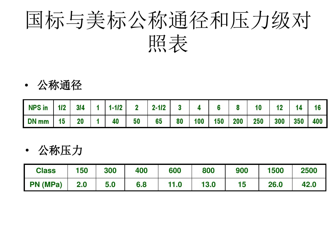 磅級(jí)和公稱(chēng)壓力對(duì)照表