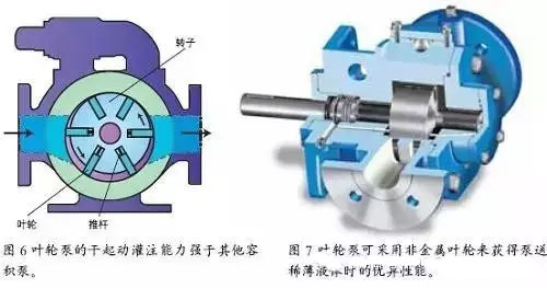 由于采用非金屬的葉輪以及非常小的運(yùn)行間隙,葉輪泵可以非常良好地實(shí)現(xiàn)灌注操作的起動(dòng)。在泵進(jìn)行起動(dòng)灌注操作時(shí),泵必須要排放空氣,而且排出的是非常稀薄的流體。由于葉輪泵能夠很好地做到這點(diǎn),所以,有時(shí)會(huì)將其當(dāng)作真空泵來(lái)使用。