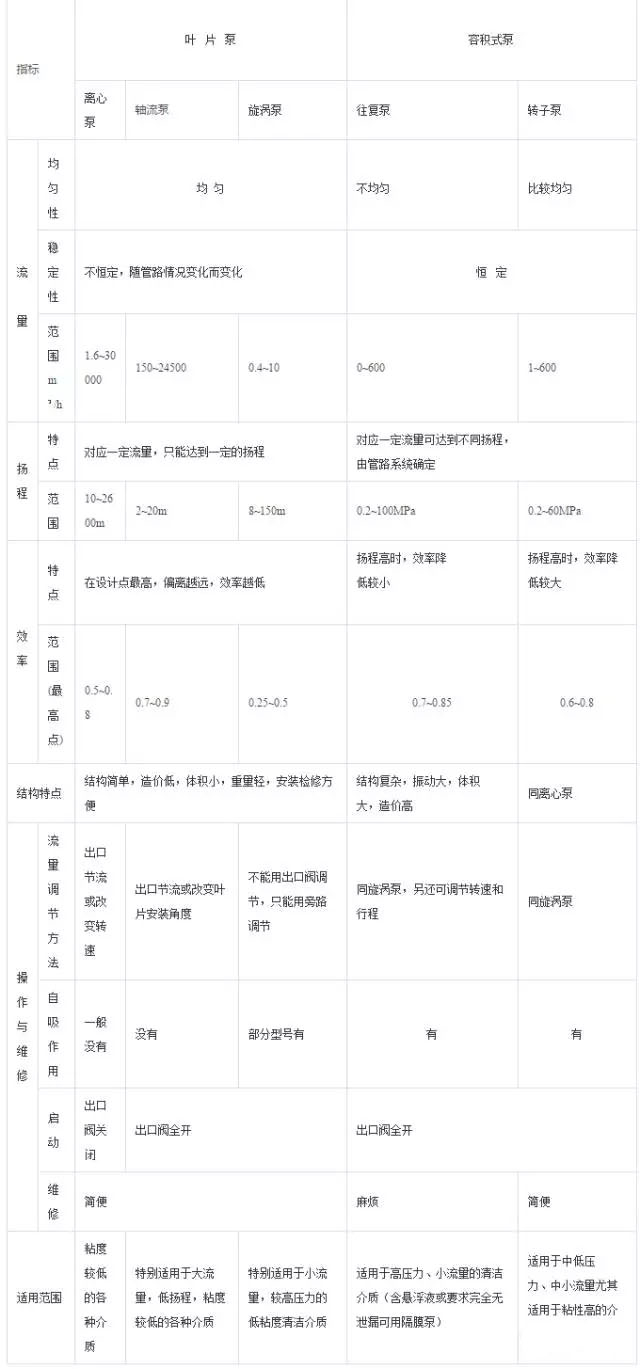 掌握各種泵機(jī)的工作原理是針對(duì)給定應(yīng)用環(huán)境下正確選定機(jī)型的良好開(kāi)端。雖然各種選擇方案之間的區(qū)別并不一定十分清晰分明,運(yùn)行和容量上的基本區(qū)別便可以用于指導(dǎo)選型。