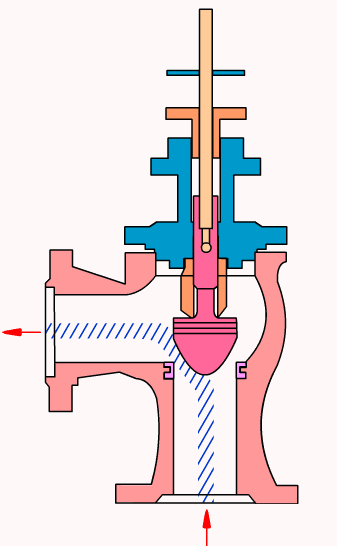 角型閥:閥體為直角形,閥體內(nèi)有一個(gè)閥座和密封面,一般為底進(jìn)側(cè)出。