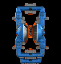 氣動雙隔膜泵采用壓縮空氣、氮氣或天然氣作為動力。主定向(氣動)控制閥將壓縮空氣分配至氣體腔室,向隔膜的內(nèi)表面上施加均勻壓力。同時排出的氣體從泵另一側(cè)后方通過氣閥組件導(dǎo)向端口排出。 氣動雙隔膜泵通過行程機械拉動吸入隔膜的移動氣動雙隔膜泵的內(nèi)板與對準(zhǔn)的驅(qū)動柱塞發(fā)生接觸,移動導(dǎo)向閥芯。導(dǎo)向閥激活后,便向主定向氣閥的另一端發(fā)出壓力信號,氣動雙隔膜泵使壓縮空氣方向改向內(nèi)部腔室的另一側(cè)如此反復(fù)運動完成介質(zhì)的連續(xù)輸送。