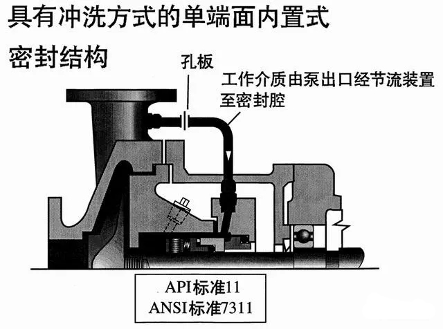 自沖洗:利用離心泵本身輸送的介質(zhì)經(jīng)端面密封壓蓋上的小孔打入密封腔內(nèi)。與泵內(nèi)介質(zhì)混合,稱為自沖洗。能應(yīng)用自沖洗的泵,輸送的介質(zhì)一般溫度較低(<100℃),介質(zhì)比較干凈,一般都是輕質(zhì)油或者水。通俗一點(diǎn)解釋就是機(jī)泵自沖洗不能用于溫度高、粘度大的液體,因?yàn)檫@樣的液體進(jìn)入機(jī)泵內(nèi)部會損傷機(jī)泵,粘度大會導(dǎo)致液體進(jìn)入內(nèi)部很難出來。