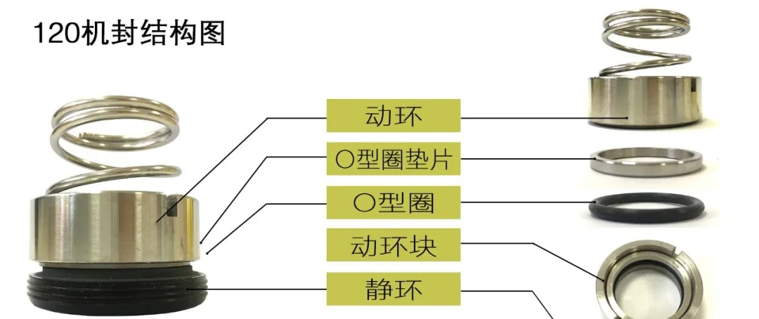 1、對(duì)泵軸進(jìn)行清理,必要時(shí)可用砂紙輕輕打磨,用干凈布將泵軸及靜環(huán)槽擦干凈,注意一定不能有雜物及小顆粒。在電機(jī)軸及靜環(huán)槽內(nèi)涂上潤(rùn)滑脂,用干凈棉布將新機(jī)封靜環(huán)擦干凈,在靜環(huán)外圈?及端面也涂上潤(rùn)滑脂,然后將靜端面朝外環(huán)嵌入靜環(huán)槽內(nèi),注意一定要平整,靜環(huán)安裝完畢。2、將動(dòng)環(huán)擦干凈后在內(nèi)圈及端面涂上潤(rùn)滑脂,端面朝內(nèi)輕輕旋轉(zhuǎn)慢慢將動(dòng)環(huán)與靜環(huán)端面貼緊,將動(dòng)環(huán)彈簧壓緊。(注意這里用的120機(jī)封動(dòng)環(huán)里面有O型圈,在此處加入少許潤(rùn)滑油,扣上O型圈墊片,動(dòng)環(huán)套入軸上,然后用小一字螺絲刀輕壓O型圈墊片,使其平整到位,然后再扣上彈簧。