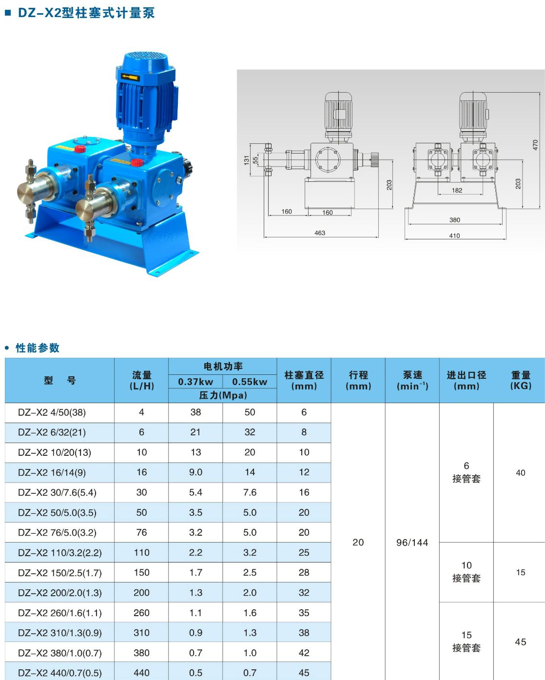 DZ-X2系列柱塞式計量泵性能參數(shù):