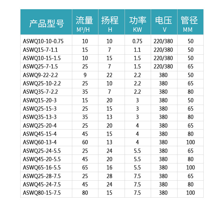 AS潛水泵切割式污水泵性能參數(shù):