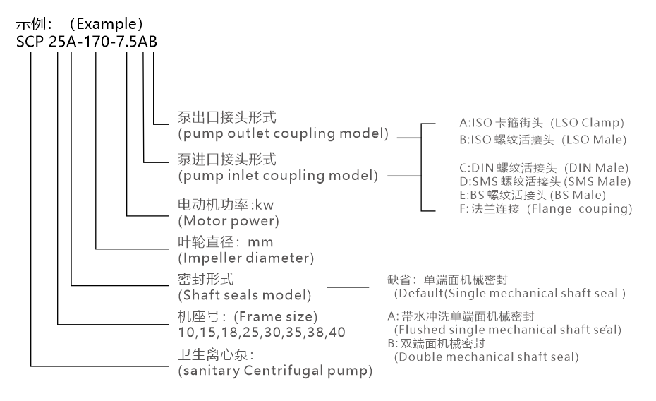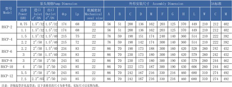 BSCP不銹鋼衛(wèi)生級(jí)食品離心泵性能參數(shù):