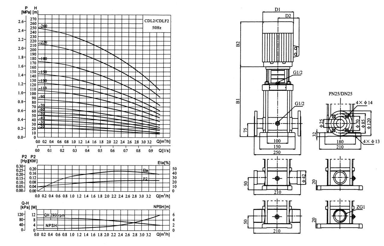 CDLF,QDLF立式輕型多級(jí)離心泵產(chǎn)品結(jié)構(gòu)及性能曲線圖: