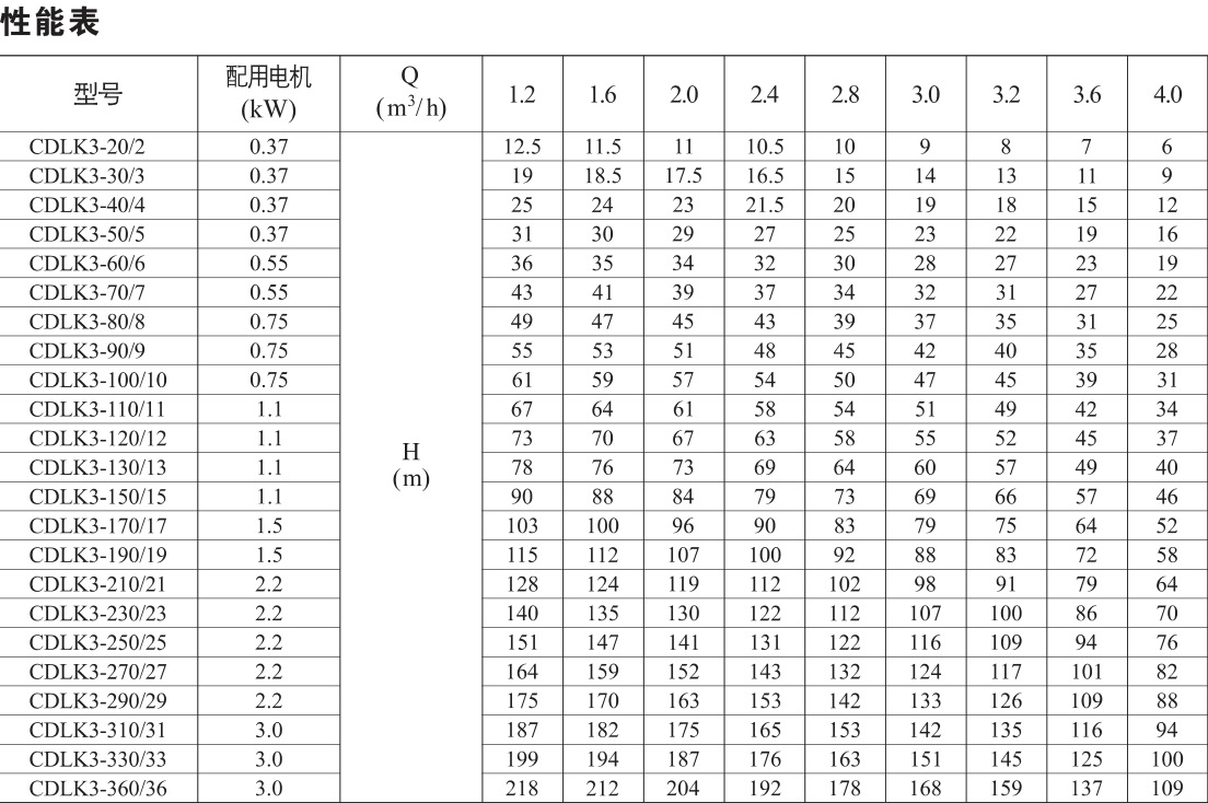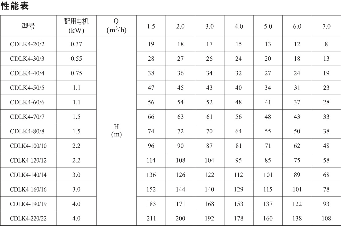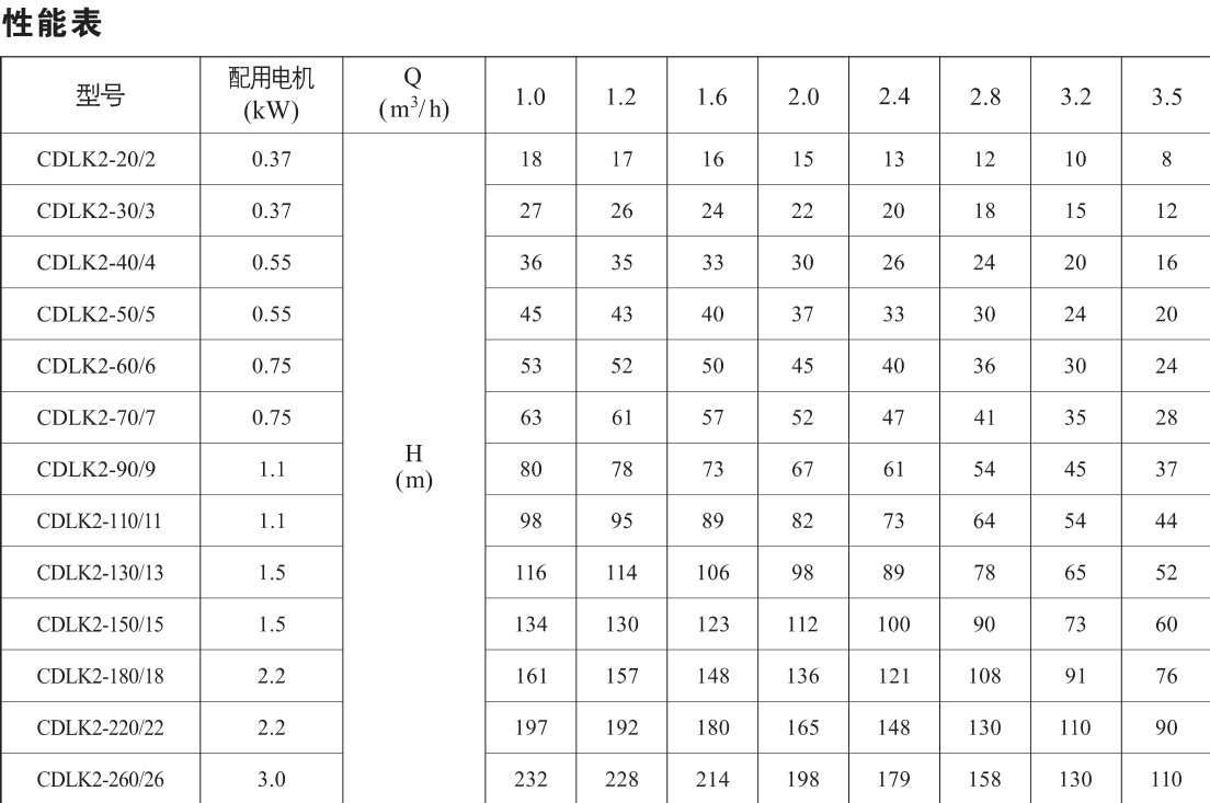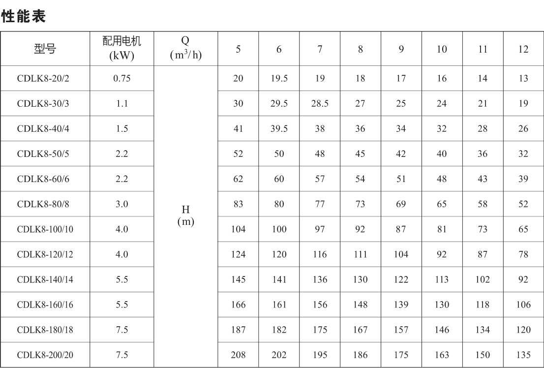 CDLK浸入式多級(jí)離心泵性能參數(shù):